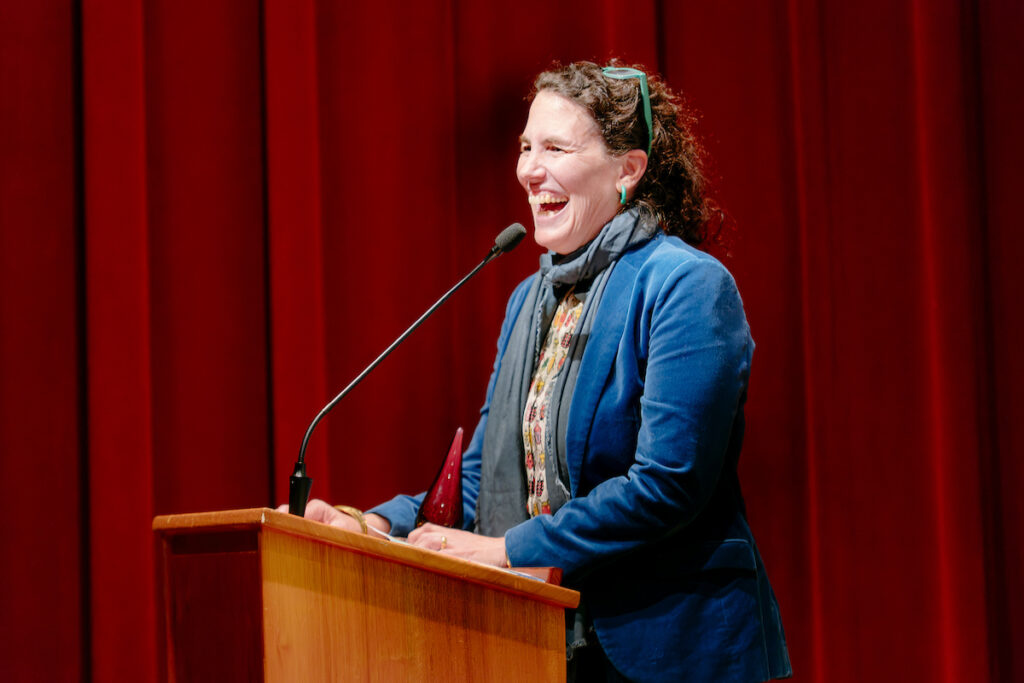 The celebration concluded with Nikki McClure, the last award winner to be honored, sharing her encouragement: “Keep making, believe that you can make, know that you can make, and know that you will make. And we are here today to celebrate, and we’re going to support this creative work. These people working towards illuminating joy… working towards showing people wonder, and creating unity, creating community. So tomorrow, what are we going to do tomorrow? I say we just keep doing this. Let’s find somebody to lift up, let’s find someone to encourage, let’s find someone to support…you have a whole community behind you, and they are all saying: ‘More, more, please, we need you!’…”