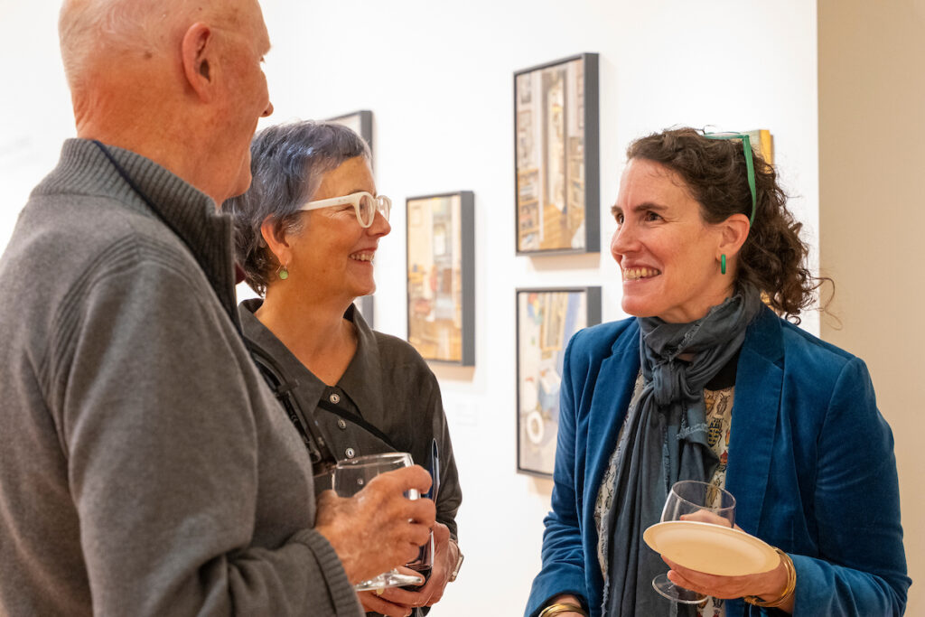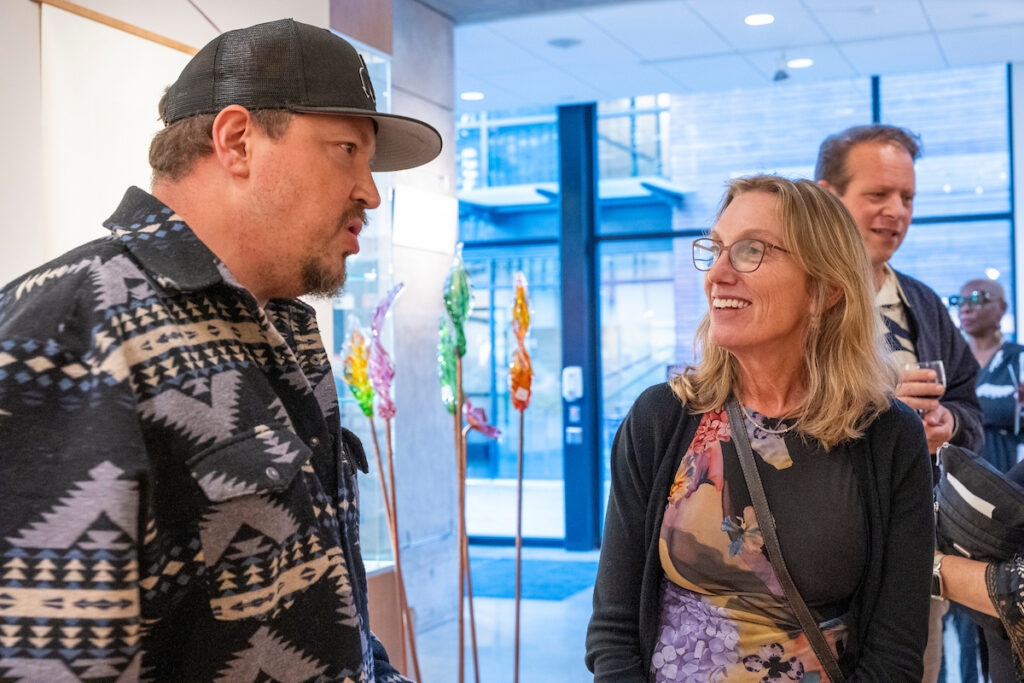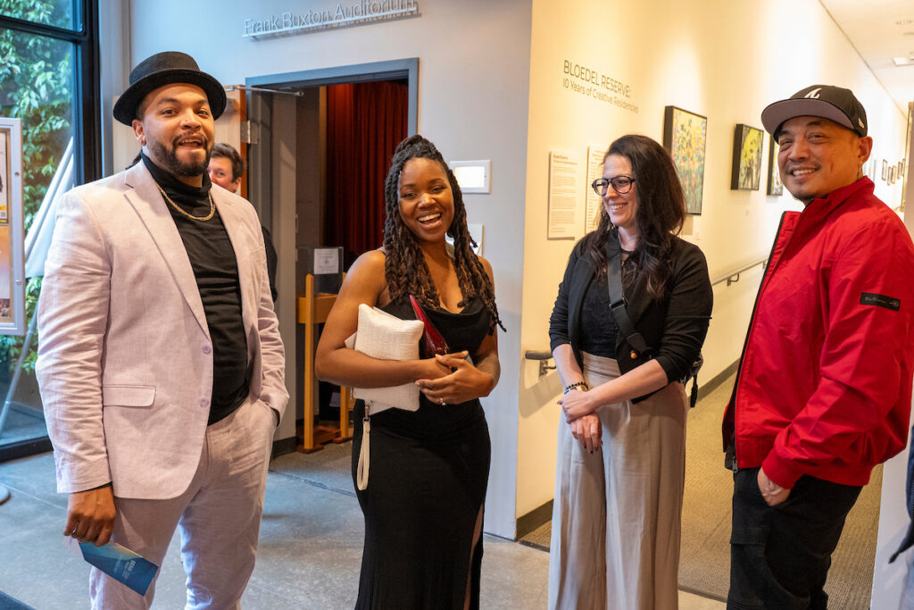 We honored four remarkable artists: Sarah Bryant, winner of the Artists’ Books Artist Award (United States); Dan Friday, recipient of the Native American & First Nations Artist Award (Salish Sea Region); Yolanda Galery, winner of the Emerging Artist Award (Puget Sound Region); and Nikki McClure, recipient of the 2025 Special Choice Category: Children’s Book Illustrator Award (Puget Sound Region). Each brought a unique perspective to their work—Sarah with her thoughtful book arts; Dan, weaving ancestral imagery into glass; Yolanda, celebrating identity and expression through vibrant paintings; and Nikki, whose delicate paper-cut illustrations connect children to wonder and the natural world.