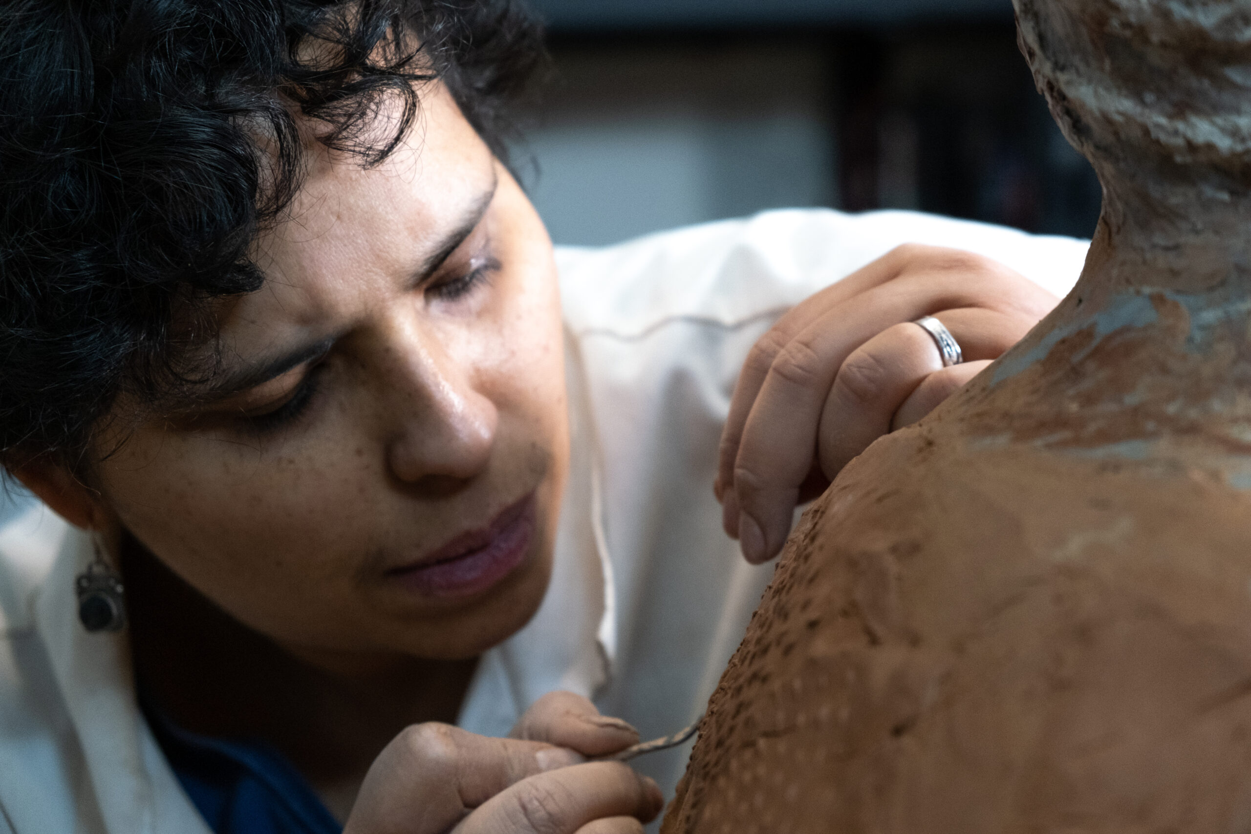 Aisha is a studio and public artist working primarily in clay and bronze. They discovered clay at a community studio while pursuing a degree in Spanish at Grinnell College in Iowa. After graduating, Aisha taught third and fourth grades in Atlanta, Georgia, while exploring clay at Callenwolde Fine Arts Center and Penland School of Crafts. They later earned a BFA from Washington State University and an MFA from the University of Nebraska–Lincoln. Aisha uses the body as a site to explore lived experiences of racism, ancestral (human and non-human) connections, and, as a mixed-race Black person, the complex histories held within their body. Their work honors real bodies while incorporating physical forms of the intangible. The figures they create often intertwine with elements of the natural world, many of which are native to the Pacific Northwest, where Aisha’s family has lived for four generations. Their work balances the individual and the collective, reflecting unique identities alongside a larger community and nature’s relatives. Currently, Aisha is working on a large-scale outdoor public art commission with the University of Washington Tacoma and the Washington State Arts Commission, as well as pieces for a solo exhibition at the Bainbridge Island Museum of Art.